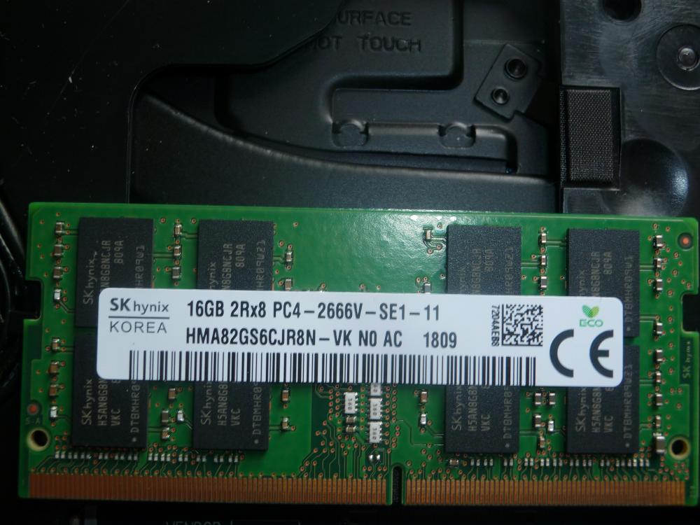 voici l'intérieur de mon laptop. visiblement la marque de la RAM installées est une SK Hynix. je ne sais pas ce que signifie 2R*8 sur la barrette ainsi que DDSK1/DDSK2 sur le 2nd emplacement vide pour l'ajout dune nouvelle barrette J'ai 3 marques compatible: un kingston hyper impact avec latence CAS de 15, une crucial avec CAS de 19 et la ballistic une latence de 16. Le truc c'est que je connais pas la latence de la barrette préinstallée SK Hynix. pas indiquée dans le Bios, dans infos systèmes,etc.... sinon ça correspond à quoi la "mémoire physique disponible" de 8.64Go? https://gyazo.com/cf52a22b8c3ceb69d0dec6ea0fa76559 -