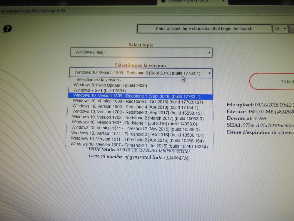 ensuite j ai mis le meme fichier sur un disque dur externe de 1 to