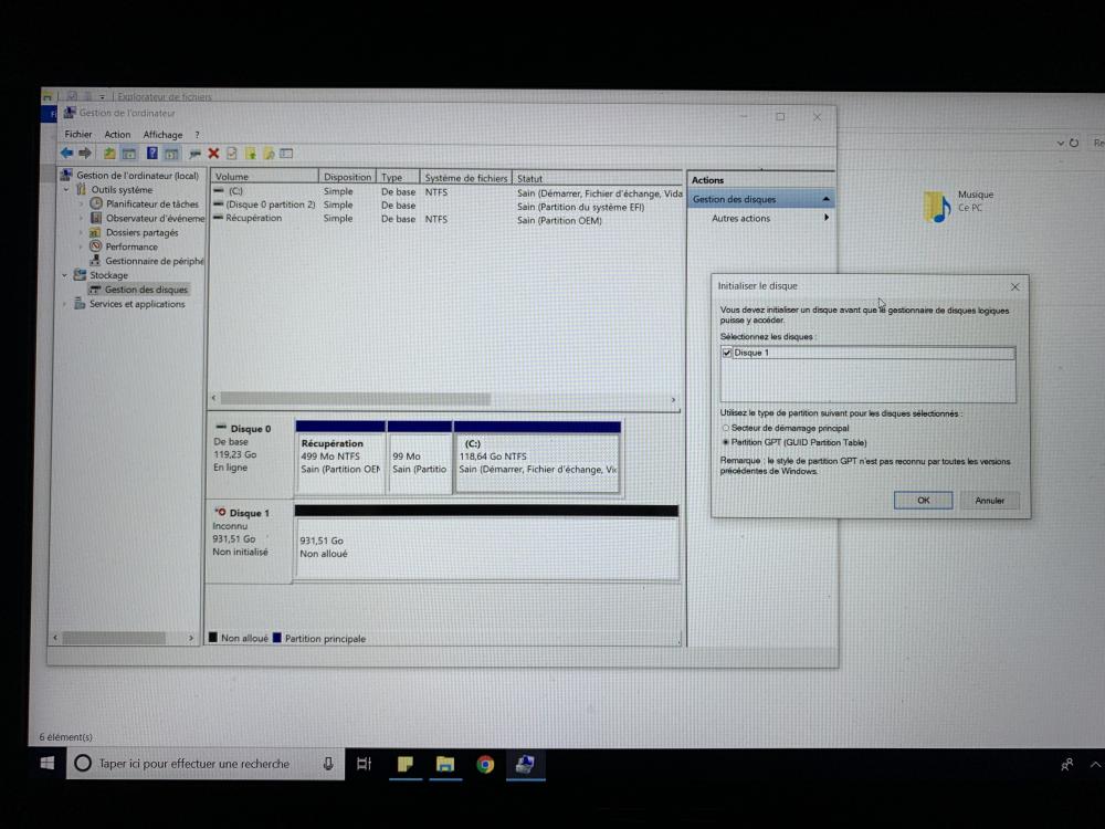 Par contre j’ai un autre soucis : c’est que mon disque dur de 1To a disparu des radars quand je vais sur « Ce PC ». C’est peut-être dû au fait que j’ai installé Windows sur le SSD 🤔 ?