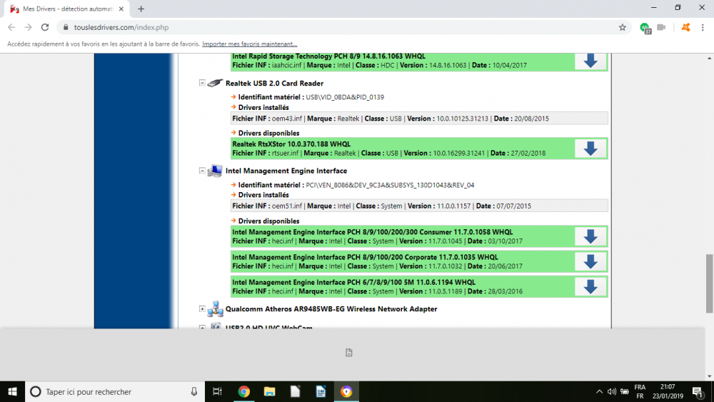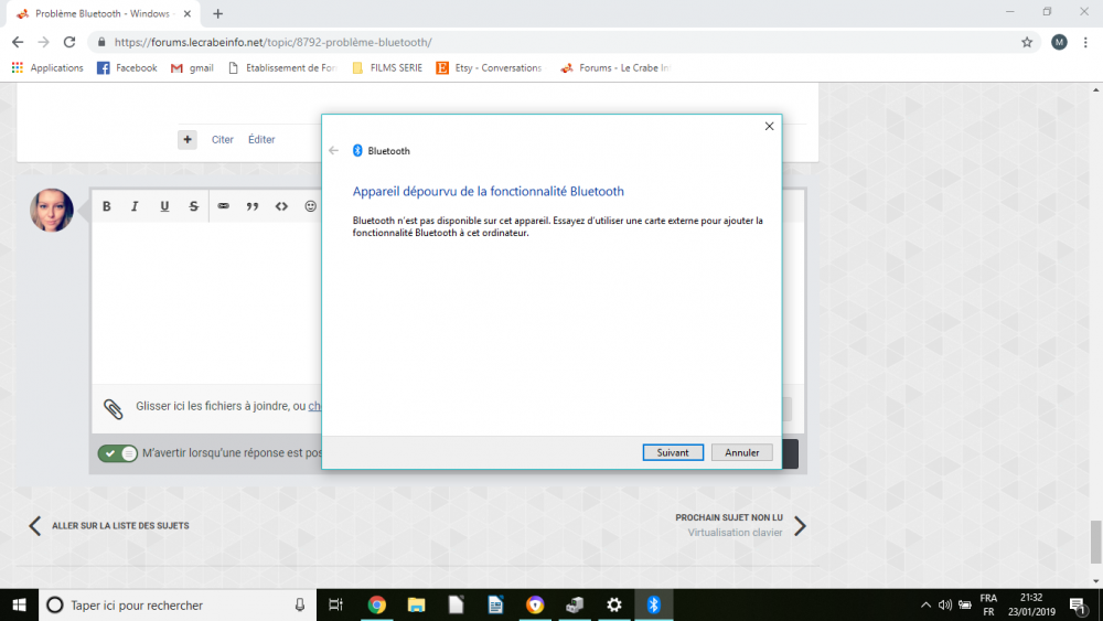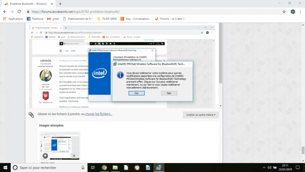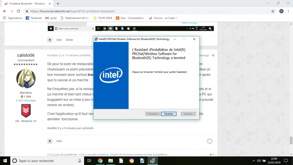 Bonjour, merci à vous et surtout à toi @calisto06 pour le temps que tu as donné en essayant de m'aider. Malheureusement même en ayant fait comme vous m'avez conseillé, le pilote bluetooth 8.1 est téléchargé mais rien ne ce passe. Ce n'est pas grave, je ferais sans bluetooth. C'était un petit détail tant pis. Bonne journée à tous.