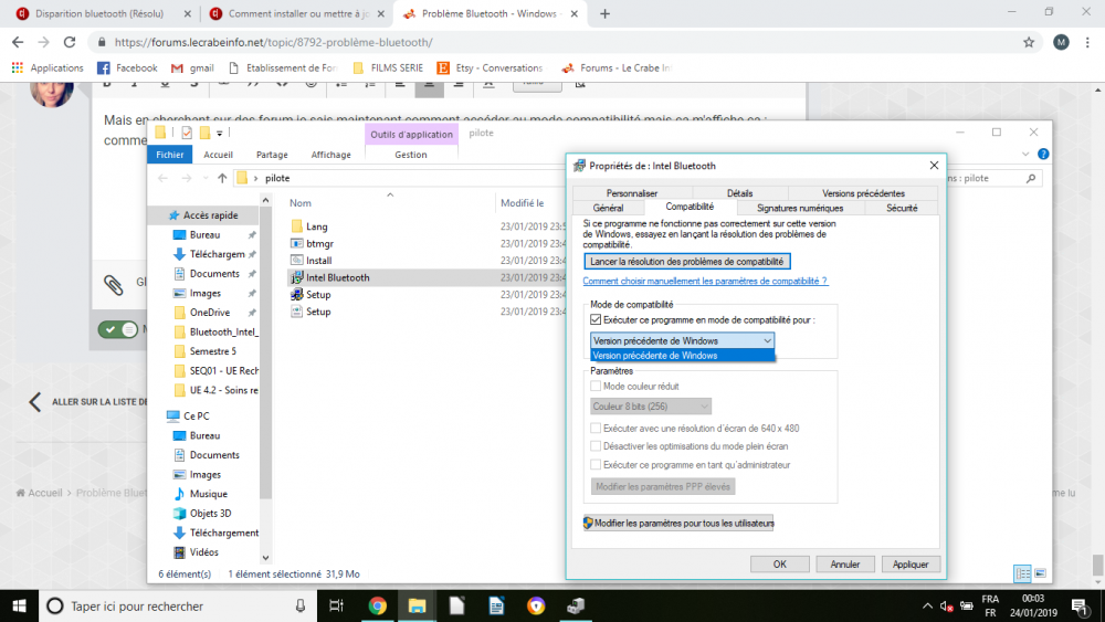 Mais en cherchant sur des forum je sais maintenant comment accéder au mode compatibilité mais ça m'affiche ça : comment faire après ?