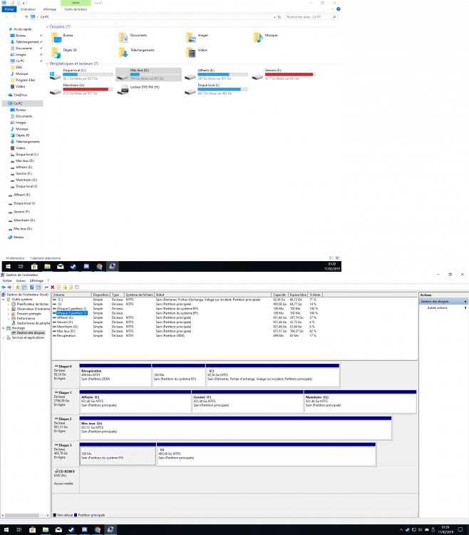 Yep le DD est visible sous W10, j'avais pas encore fais le test sous Windows ^^" Le disque en question c'est (I:) La Save Brute des dossiers de (I:) c'est Alfheim (E:) est avec Ubuntu ça a bien pris son temps x"D