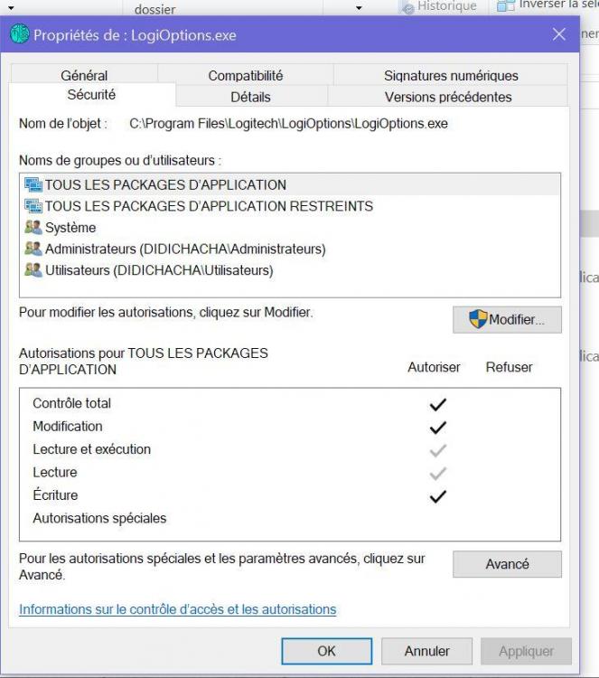 1. Hello J'ai essayé ,mais je n'ai pas la même fenêtre que vous...avec les proprietés Je vous transmets en attaché les fenêtres a partir de l'exécutable de Logitech Options.exe Je désespère .... Gilbert