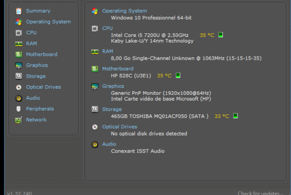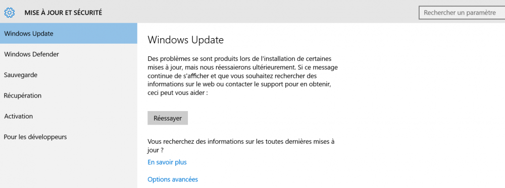 bonjour calisto06 le pc portable avant la mise a jour 'était 1503 on l avait jamais fait des mise a jour c'est un portable d un amis qui habite bruxelle et mois a 80 km de chez lui . j'ai 'était avec TeamViewer dessus ,et a plusieurs reprise il veu rien savoir c est un hp notebook hp tu me demande quel mise a jour bloque j 'en sait rien oui il avait un cadre avec un triangle rouge qui me disait imposible de continuer j irai voir avec speccy et faire des capture d'ecran mais se sera pas avant se jeudi car il est pas chez lui encore merci on se recontactera