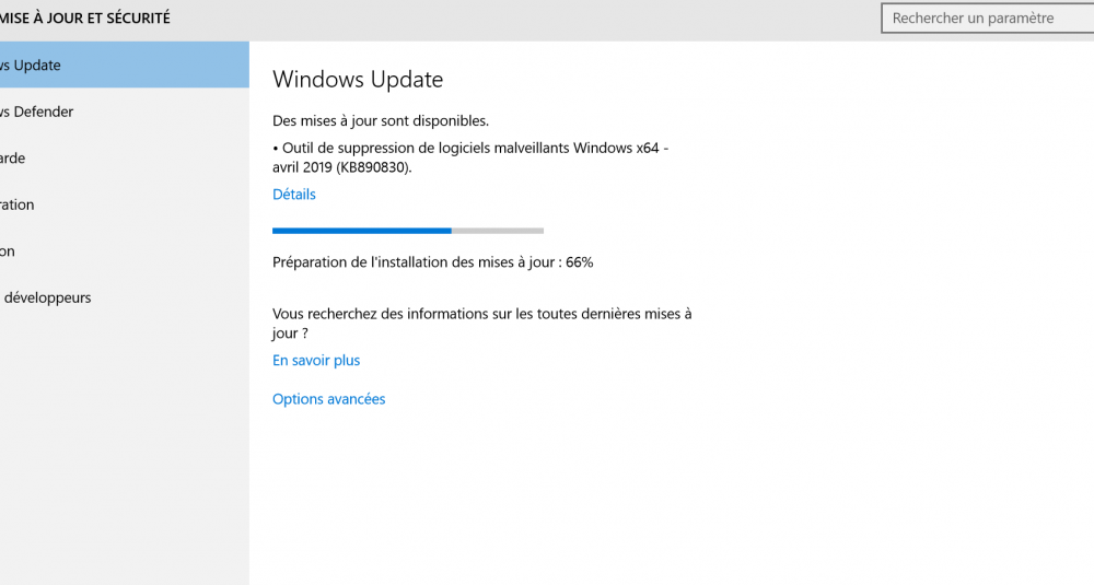 rebonjour Callisto 06 comme promis j 'ai était faire des captures d'écran sur le portable du copain car c'est mises a jours impossible de les faire. il se bloque a 66 pourcent et son Windows defender on c'est pas l'activer non plus. merci de m'aider vincent pour infos son portable c'est un notbook