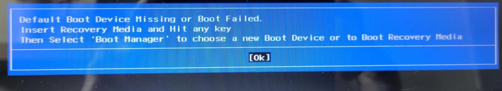 Salut Je devais changer un disque dur par un SSD neuf sur un Lenovo G50-30, mais j'ai eu des messages d'erreurs avant d’accéder au boot pour démarrer sur ma clé d'installation (qui fonctionne car je l'ai testé sur un autre ordi juste après). J'ai aussi désactivé le démarrage rapide. Après avoir fait F12 pour accéder au boot j'ai eu ce message d'erreur : J'ai fais ok et j'ai eu ce message : Et j'ai eu le menu du boot mais pas ma clé n'y apparait pas. Dans ce menu c'est quoi ces deux options ? J'ai eu aussi ce message : Est-ce qu'il y aurait un problème avec le bios ?