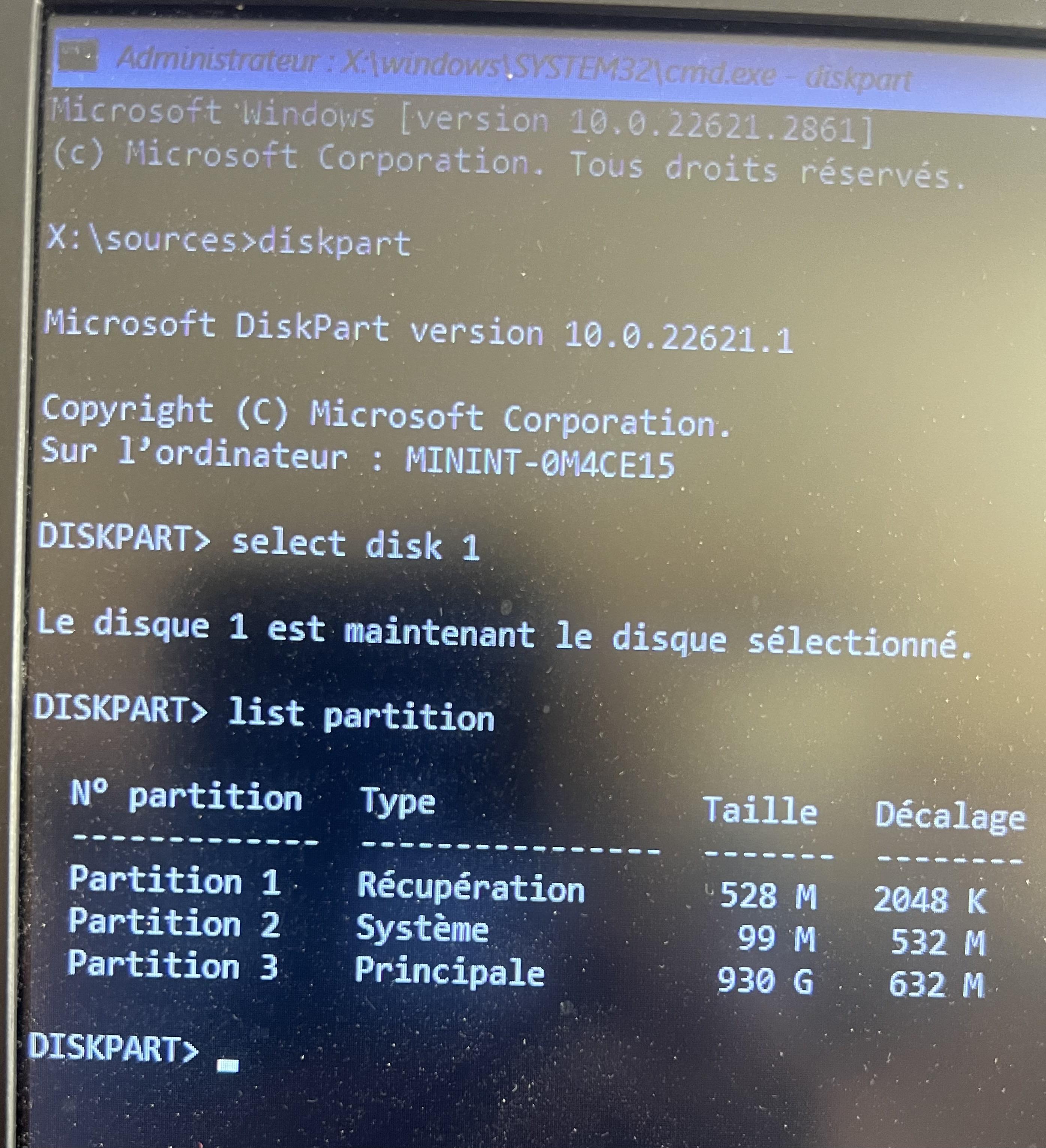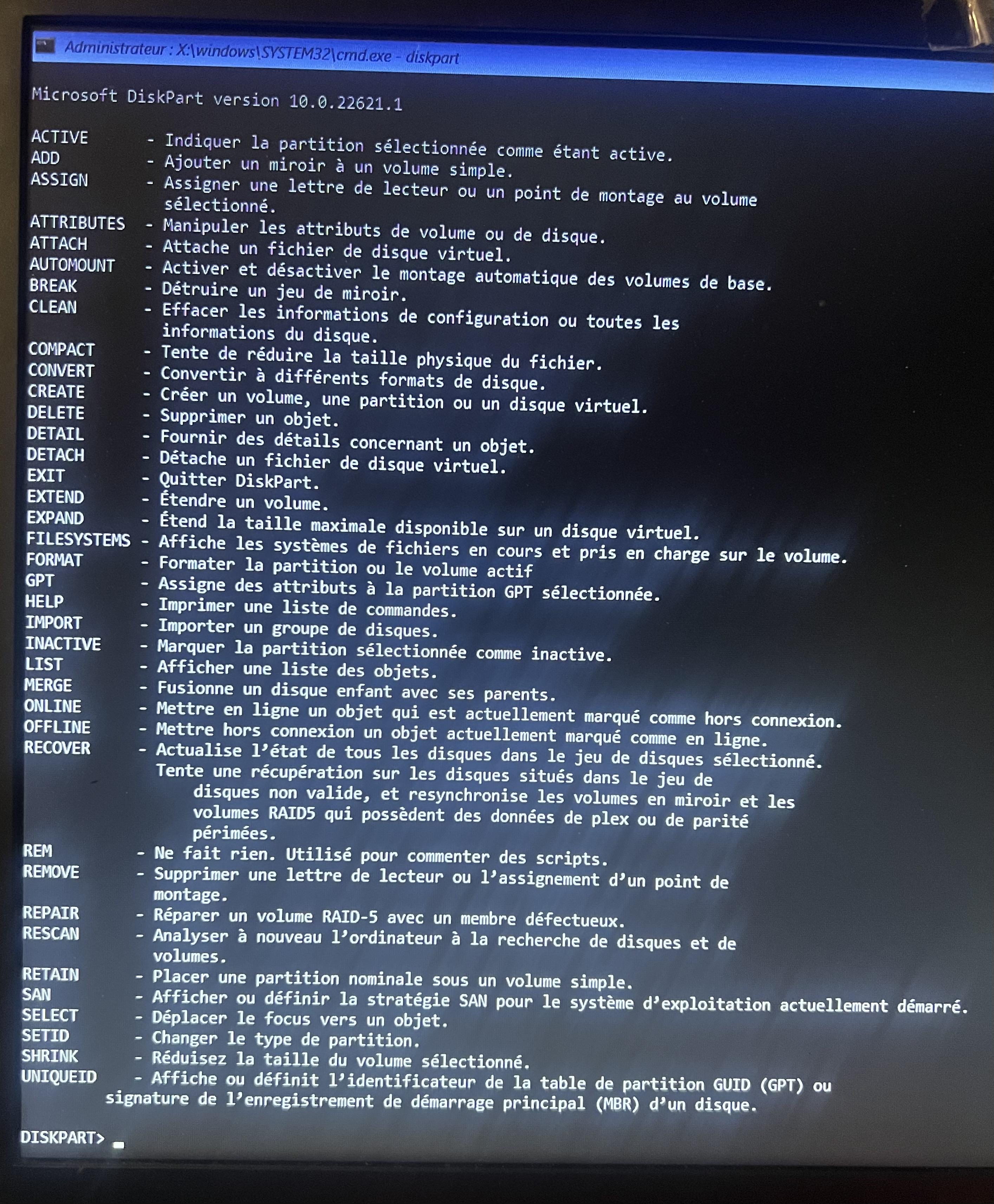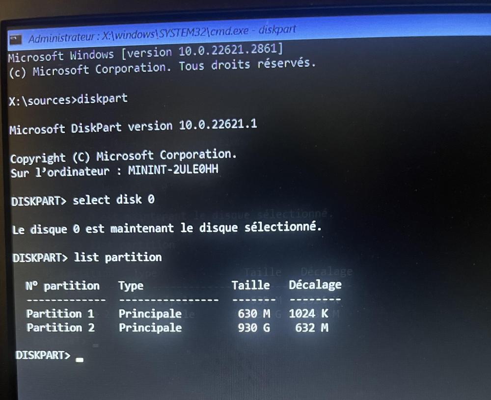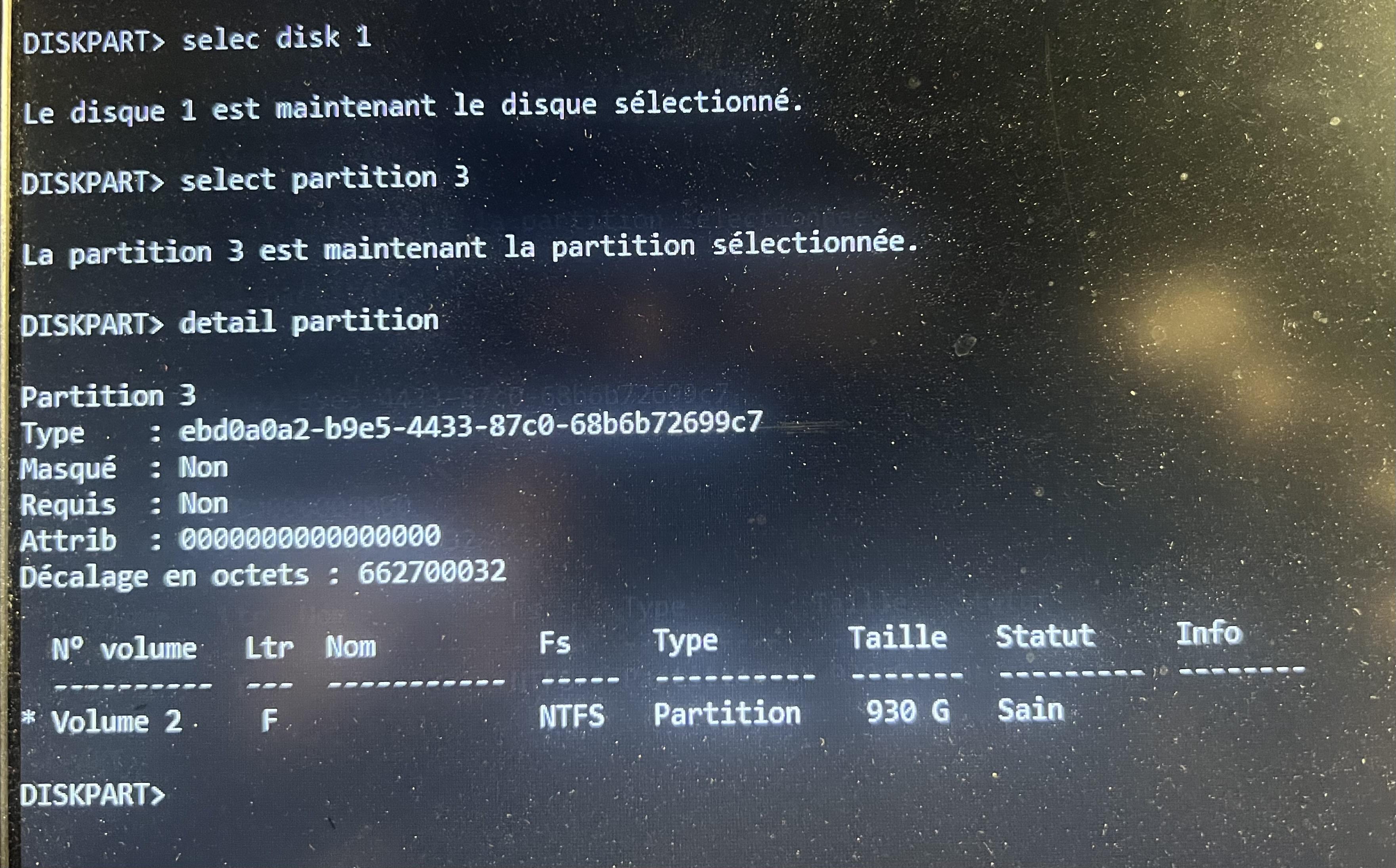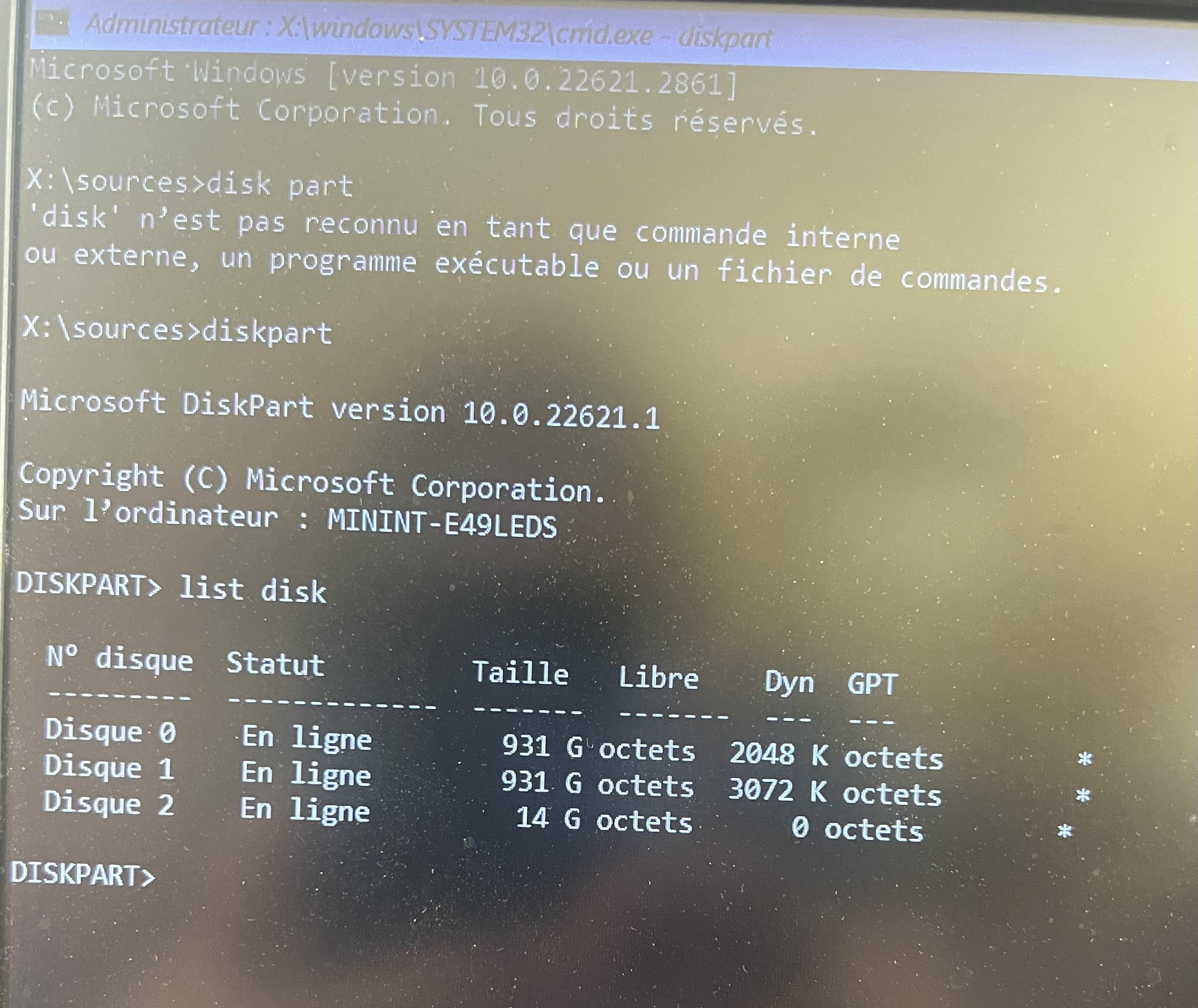 J'ai déconnecté les disques externes, ceux qui reste sont partitionnés. je tape la ligne: DISM /Image:C:\ /Cleanup-Image /RestoreHealth /Source:WIM:G:\sources\install.wim:1 et j'ai toujours une erreur