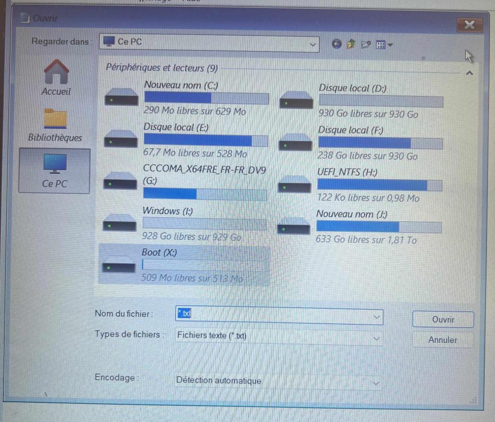 dir C:\Windows = le volume dans le lecteur C s’appelle nouveau nom Le numéro de série est 8C2B-9BD7 dir D:\Windows = le volume dans le lecteur D s’appelle nouveau nom Le numéro de série est D267-FDE5 dir E:\Windows = le volume dans le lecteur E s’appelle nouveau nom Le numéro de série est 495D-BAB0 dir G:\source = le volume dans le lecteur s'appelle CCCOMA_X64FRE_FR-FR_DV9 Le numé Le numéro de série est 064C-96C0