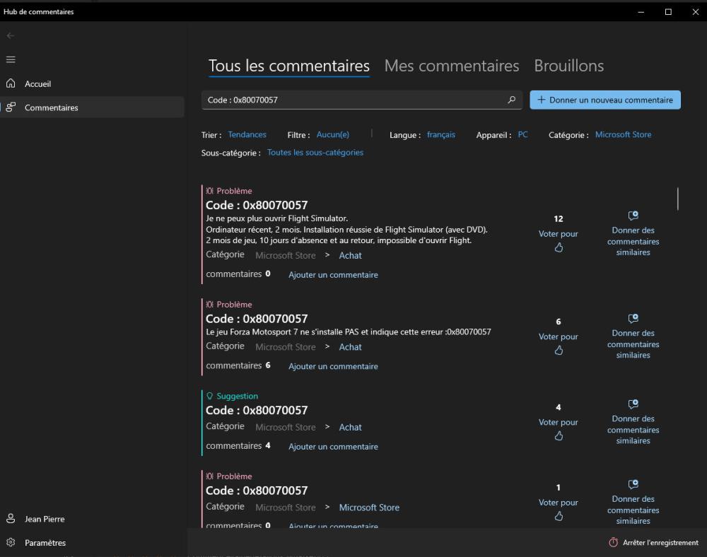 19. Bonjour, Microsoft store ne fonctionne pas chez moi et cela depuis presque le début, il a fonctionné 1 mois, depuis il tourne indéfiniment et m'indique qu'il y a une erreur. J'ai signalé ce problème, mais je tombe sur une page de commentaire Si vous avez une idée du problème, d'avance merci !