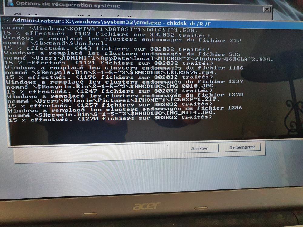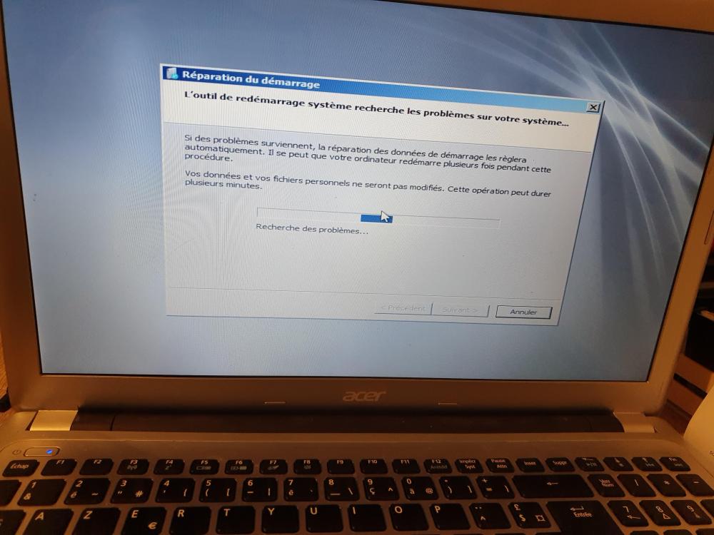 Bon, après toute une nuit et toute la journée d´aujourd'hui, le pc n´a toujours pas avancé dans sa réparation. Cela fait désormais 72h sans la moindre avancé, sans le moindre dossier traité. Je vais encore le laisser agir mais j'ai peu d'espoir qu´il avance encore