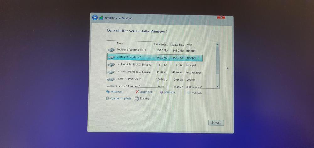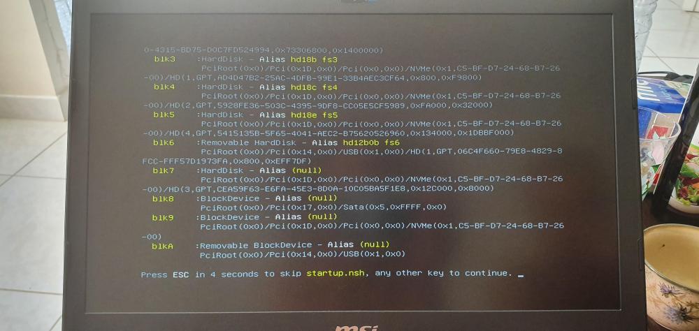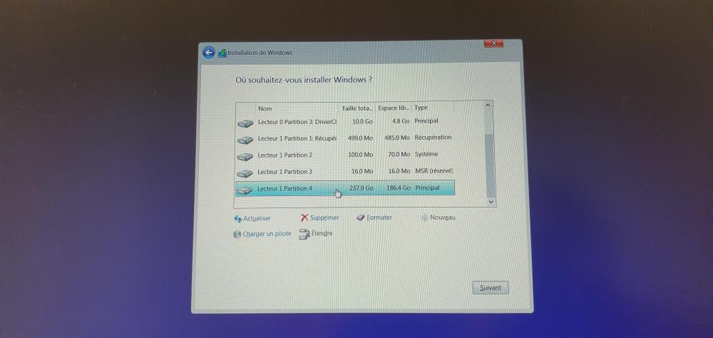 3. Bonjour,J'ai acheté un ordinateur portable MSI GP73 8RE-287XFR Leopard sans OS (HDD 1 To + SSD 256 Go)J'ai mis windows 10 sur une clé usb bootable.sur cet ordi, je boot donc sur la clé usbJe suis les instructions qu'il fautJe choisis d'installer windows sur Lecteur 1 partition 4 (qui je suppose est le SSD) Après la phase "en cours d'achèvement" terminé, j'ai un message qui dit que l'ordinateur va redémarrer. Puis quand il redémarre, j'ai cet écran Cet écran c'est ce que je vois quand je démarre l'ordi sans OS.Remarque : à la 1ère tentative, pendant la phase "où souhaitez-vous installer windows", j'ai installé sur une partition où il était écrit "espace non alloué". Donc ça n'a pas marché.Puis à la 2è tentative, la mention "espace non alloué" a disparu, et j'ai installé sur la partition où il était écrit 237 Go de libre, pensant que c'était le SSD. Mais ça n'a toujours pas marché.Puis à la 3è tentative, la partition qui, je suppose, correspond au SSD ne mentionne plus 237 Go, mais 186 Go de libre. J'ai besoin d'aide s'il vous plaît