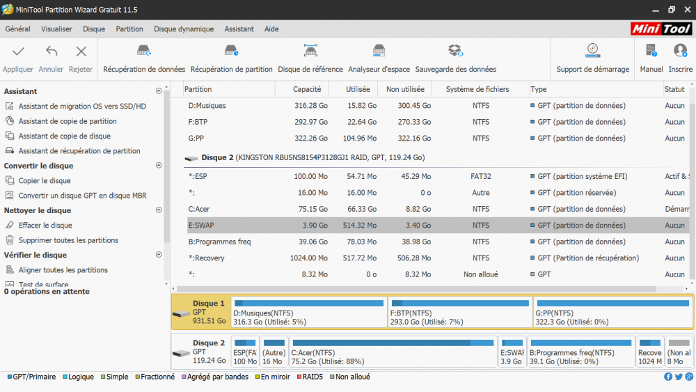 Mais bon, je me dis la sauvegarde constructeur ça peut être utile, on laisse comme ça. (Bon si vous avez un Tips pour recollez les 8Mo non alloué du SSD à une partition je suis preneur)