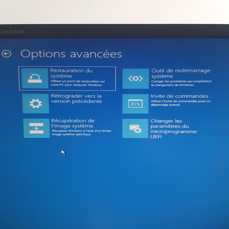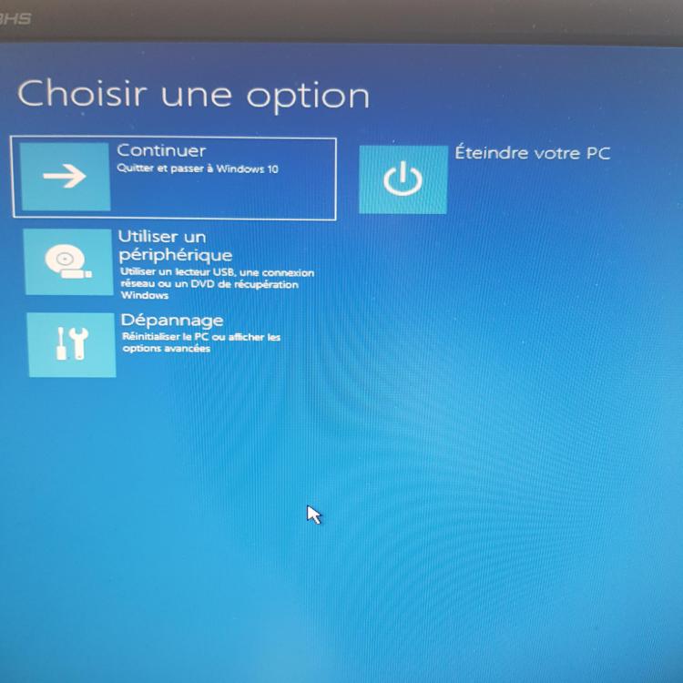 Alors, En bootant sur la clé USB, et en cliquant sur "réparer l'ordinateur", j'arrive sur cet écran (que j'avais également si je bootais sans la clé et que je choisissais "options avancées". Et en cliquant sur dépannage, ça me donne le 2eme écran. J'ai donc apparament accès a l'invite de commande. Je dois faire un sfc /scannow, c'est ca ?
