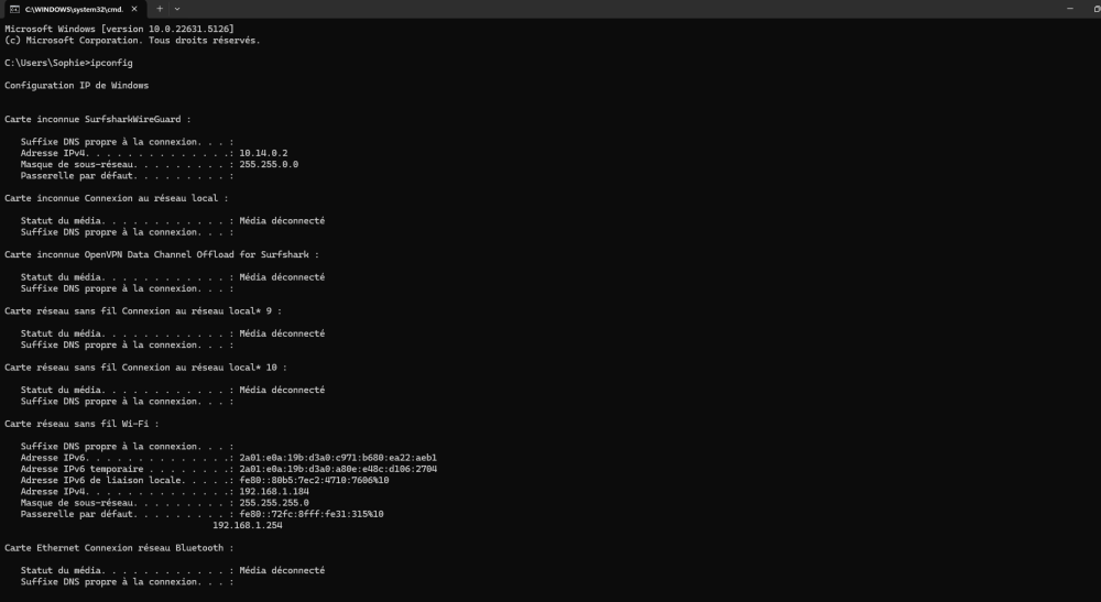 oui c'est tout à fait ca! je dois brancher le hub, il doit être détecté par la box et j'ai télécharger une appli sur mon tel lié à ce hub pour recevoir les notif oui , sauf que le hub n'est pas détecté ( j'ai mis la photo du hub en question en PJ) et voici le screen de ip config je ne sais pas par contre si je devais faire aussi ipconfig/all merci :) -