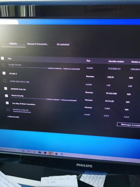 C'est fait J'ai ceci ensuite, j'ai installé winrar et chrome, le truc CPUID ASIS cest INSTALLÉ mais je ne sais pas comment ??? Il ne me semble pas avoir cliqué, dois je le laisser ?