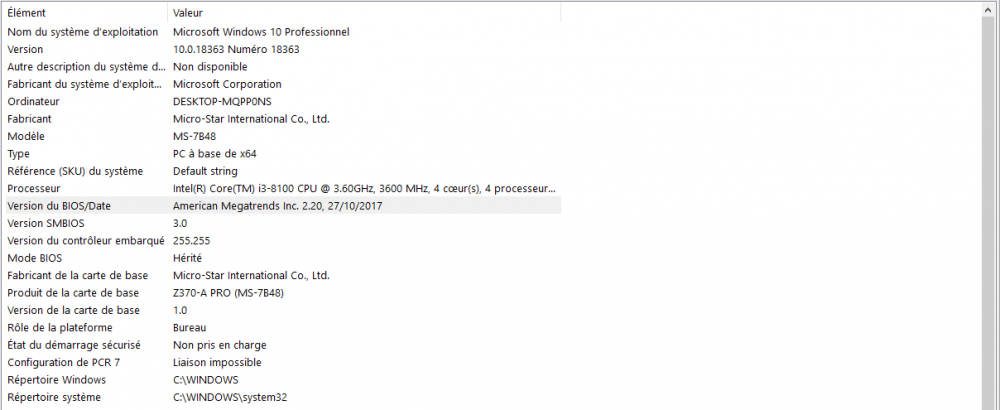 - j'ai mon actuel os qui est un Windows 10 pro 64 bits obtenu en crack (je sais, c'était il y a deux ans, j'aimerais redevenir plus honnête),