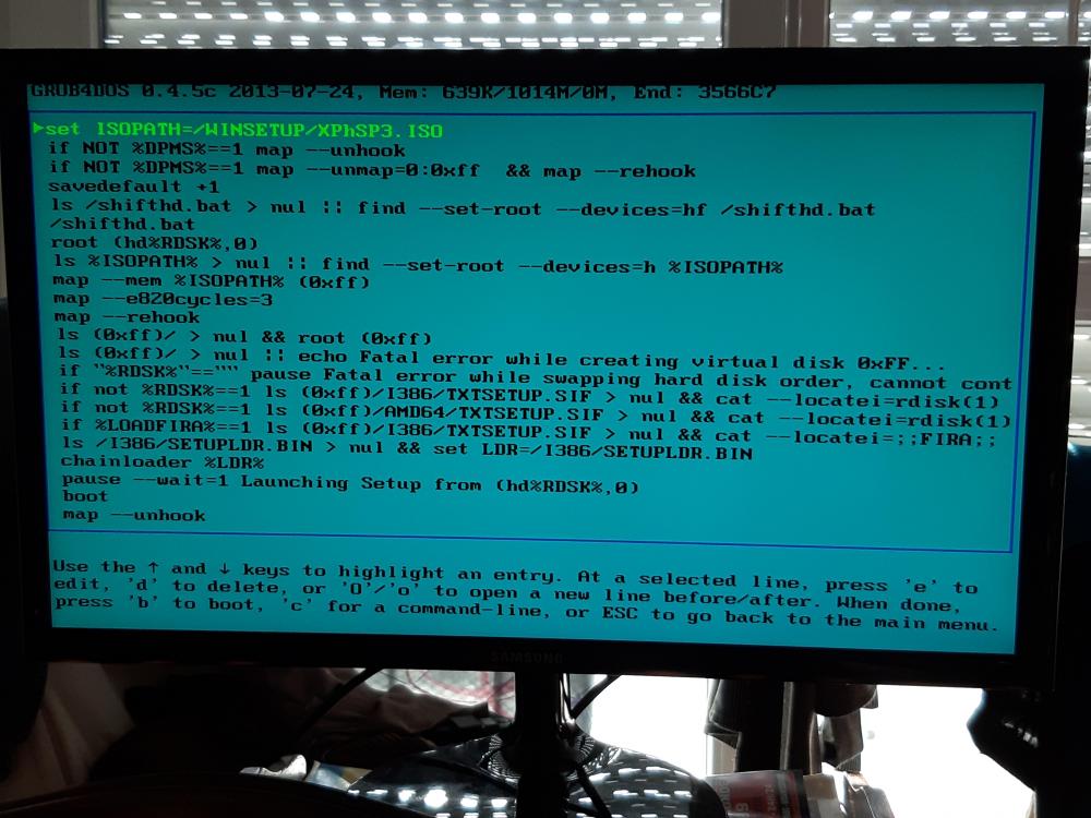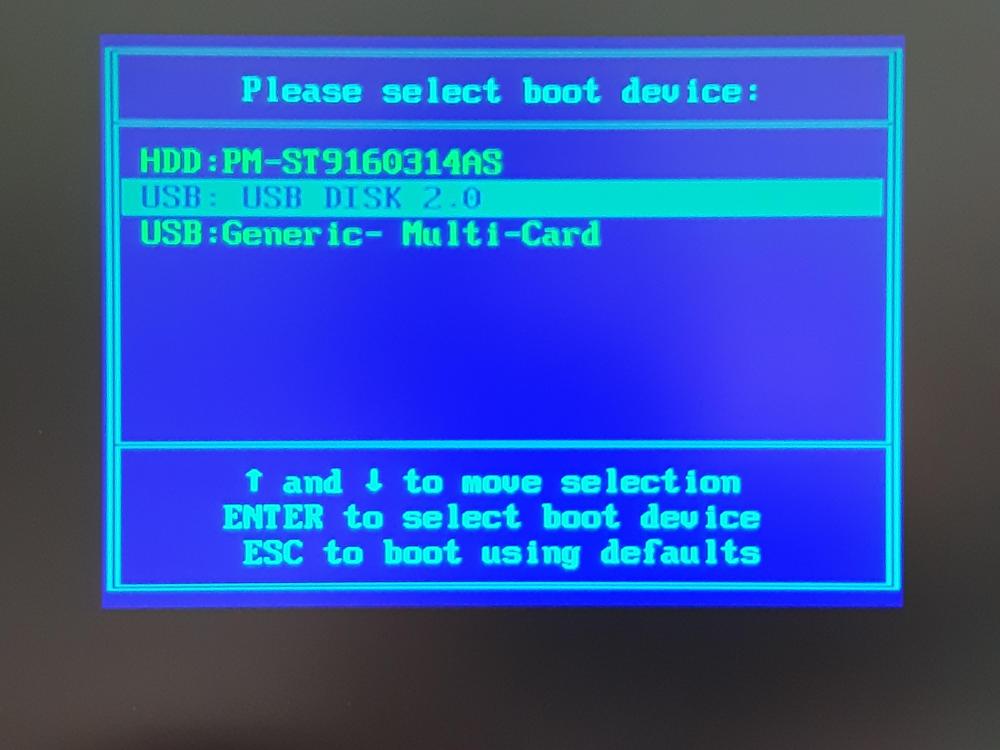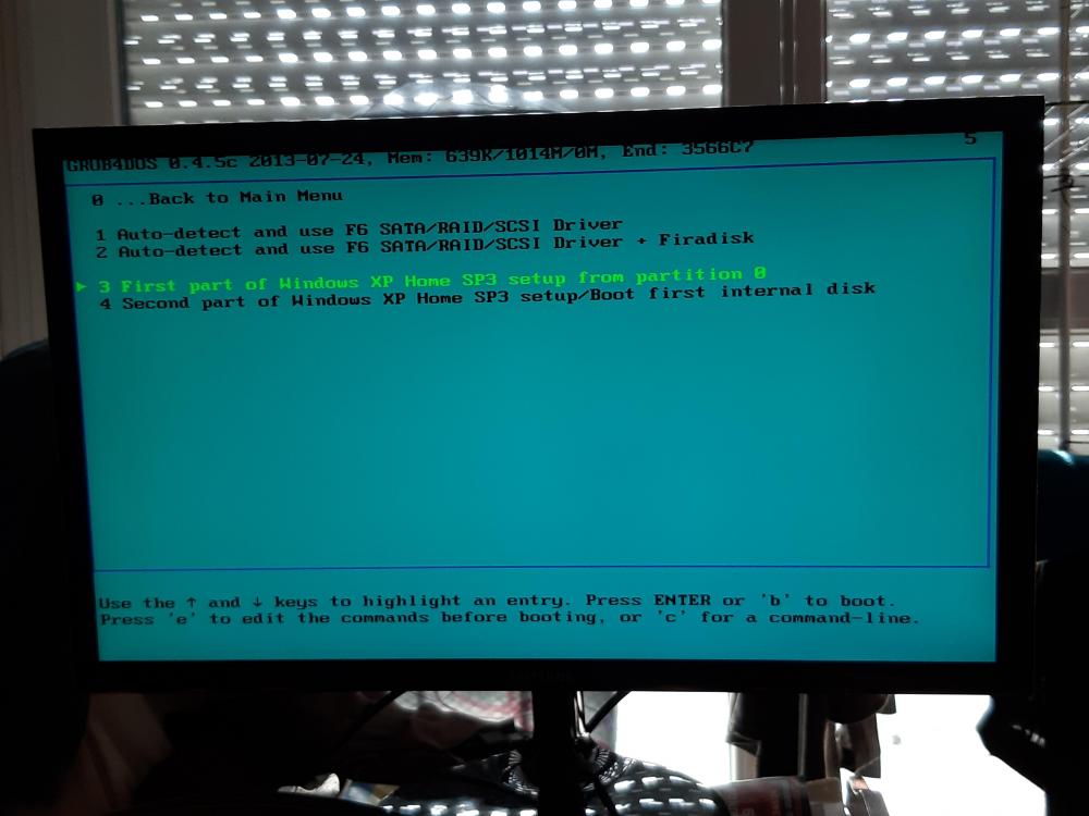 Je lance la machine avec le lecteur usb branché et j'appuie sur F8. Je sélectionne USB 2.0 pour Boot, puis l'option 3 ( lancer la première partie de Xp )