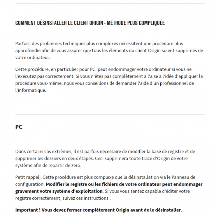 10. Bonjour tlm En ouvrant Origin il me dit qu'il y a une mise à jour. Bon ok pourquoi pas ? Je clique sur OK et 10 s plus tard j'ai ça : . Je télécharge ce qu'ils disent et pareil même blocage. Je tente une désinstallation : Je fais tout ce qu'ils disent et toujours pareil, il ne peut pas établir la connexion internet ! Pourtant elle fonctionne ? Si vous avez une idée, dites moi. Je n'ai strictement rien changé sur mon système ces derniers temps. C'est hier en le lançant qu'il m'a dit qu'il y avait une maj et que ça s'est bloqué. Steam, Epic games et Uplay fonctionnent très bien, et toutes mes autres applis aussi. J'ai tapé le message dans google et pas vu de sujet récent concernant ce blocage ....... J'ai fait un sfc /scannow : résultat ok. Merci d'avance et bon dimanche