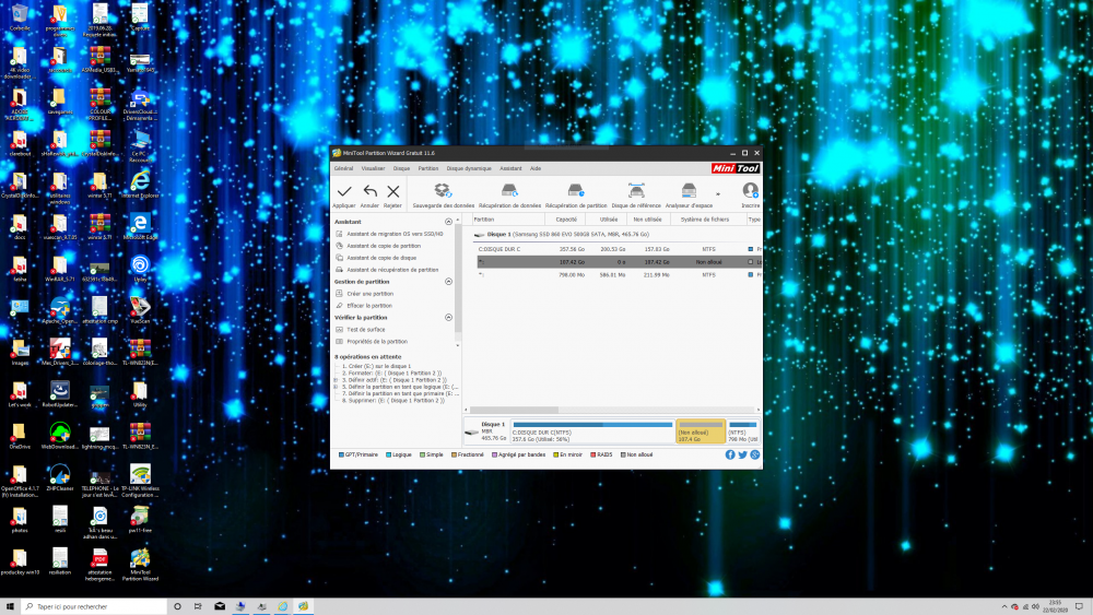 Merci pour vos réponses chose bizarre lorsque je veux augmenter ma partition C je prends la totalité du volume de 107 Go, j'ai réussi à réduire, mais j'avais pas fait gaffe que MPW, donnait la valeur à moitié du volume, que c'était à moi de mettre la valeurque je voulais, donc je l'ai réduit deux ou trois fois, une fois réveillé je prends le reste soit 107 go, lorsque je clique sur OK, aucune réaction, chose encore bizarre, lorsque je passe par win10, malgré avoir récupérer 40go environ, je suis tpujors à 150 go de disponible, ou sont passes mes 40go