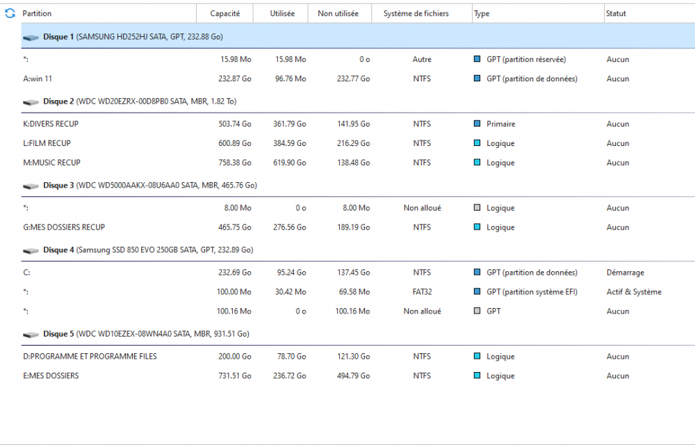 Bonjour, ce que je ne comprends pas ,c'est que quand je fait une instal de Windows ,je déconnecte les autres disques.A moins que lors de mise a jour majeure ça ne change mes partitions de places, mais ça me parait assez impossible.