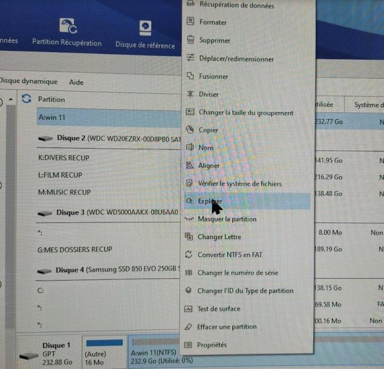 Bonjur Quand je fais un clic droit sur cette partition je n'ai pas "explorer" par contre sur une autre ça y est bien!!!