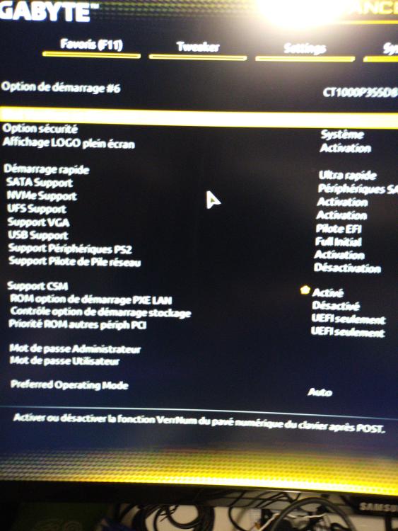 21. En faisant comme tu m'as indiqué, je suis arrivé dans le bios.est ce qu'il y a quelque chose que je peux changer pour retrouver le démarrage avec "SUPPR