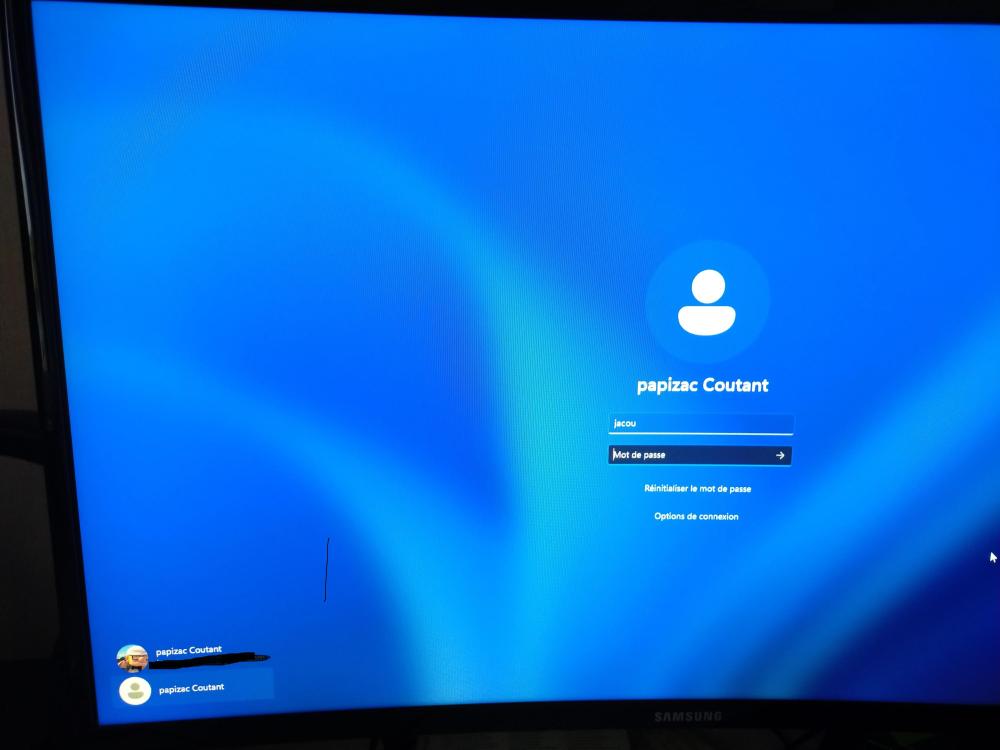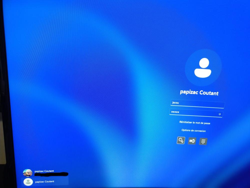 Bonjour et merci. Dans un premier temps quand win s'ouvre j'ai ça: je clique sur ok j'ai ça qui s'affiche: Comme je ne connais pas ce mot de passe je clique sur options de connexion : J'ai trois options de connexion , mais ça ne m’intéresse pas donc je clique sur papizac Coutant ,et là j'ai ça: et je rentre mon code confidentiel et ça marche. En résumé je voudrais me débarrasser de celui qui me demande un mot de passe que je ne connais pas . -