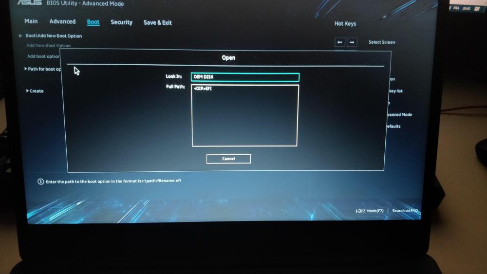 Delta, voici ce que j'obtiens lorsque je clique dessus, et la deuxieme photo est lorsque je clique sur path for boot option
