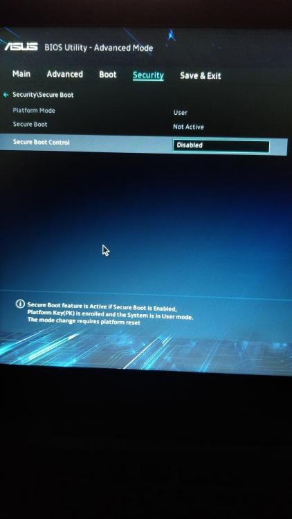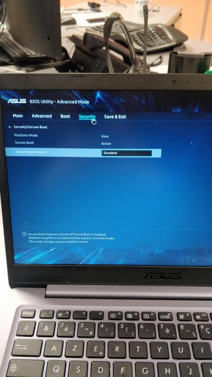 Oui j'ai testé ceci et j'ai le même souci, rien ne change quand je reviens dans l'onglet BOOT, une fois la ligne SECURE Boot mis sur Disabled. La clé usb est bien reconnu par le bios pourtant. Les photos sont dans l'ordre d’exécution. modification pour mise en forme. Équipe modération.