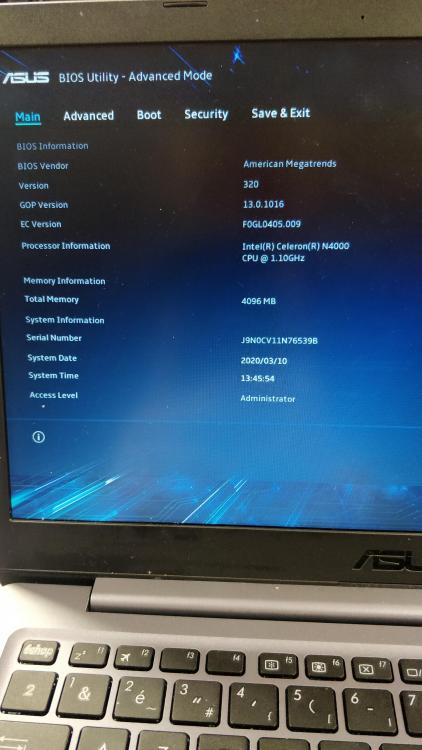Calisto06, c'est une clé que j'ai booté sur un ordinateur fixe sous windows 10 et elle fonctionne car j'ai déjà formaté un pc lenovo avec. Mais j'ai deux pc asus à formater et j'ai le même probleme de bios/boot, a savoir que je ne peux pas changer l'ordre du boot.