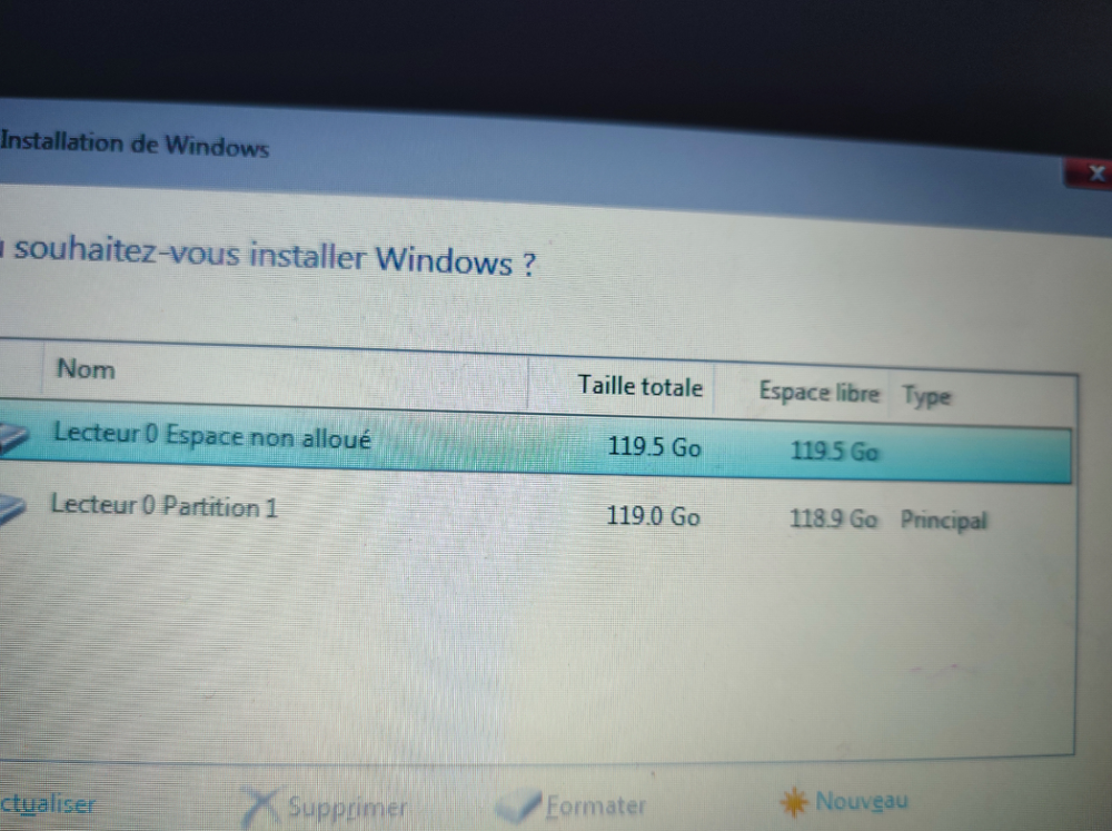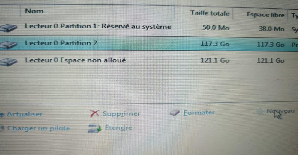 Après avoir supprimé la partition qui contenait le système, j'ai obtenu le résultat illustré sur l'image. 2 / 2 -