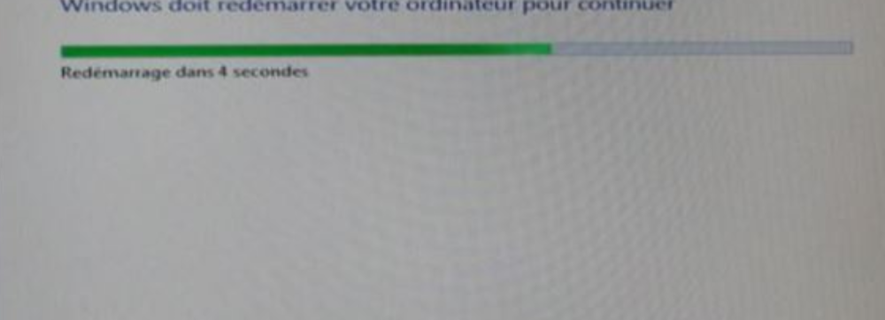 Après avoir atteint l'étape de redémarrage, qui est indiquée par l'apparition du message de redémarrage tel qu'illustré dans l'image, le système affiche le message suivant : "boot image is corrupted, the system cannot boot" sur un écran noir ? -