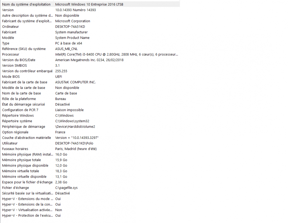 1. @calisto06 @KRISTOBAL Pour répondre a cette phrase " et donc question d'où vient ton ordinateur, à priori du parc d'une entreprise. " C'est un boitier acheté sur Top achat ainsi que tout les composants et monté par mes soin. Je n'ai en aucun cas un Pc dit " d'entreprise ". Je peux vous fournir la liste d'achat si besoin... @calisto06 sachant que c'est un pc fixe je n'ai aucun numéro de série. J'ai récupérer un ISO Windows 10 Enterprise v.1909 Build 18363.719 je vais voir ce que ça donne.