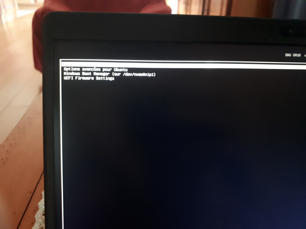 Bonjour, J'avais déjà posté il y a quelques semaines un message sur ce forum afin de procéder l'installation d'un dual boot Ubuntu 18.04 LTS/Windows 10. Cela fonctionnait bien mais de temps en temps Ubuntu refusait de démarrer : GRUB s'affichait correctement mais quand je sélectionnais Ubuntu, l'écran restait violet (de la même couleur que le fond du menu GRUB) et rien ne réagissait. Cela avait déjà réagi comme ça durant l'installation, alors que j’essayais de booter sur la clef d'installation sans avoir mis l'ordi en mode AHCI à la place de RAID. Bien évidement le rapide boot et secure boot de Windows sont désactivés. Plusieurs essais successif conduisaient toujours à l'echec du demarrage, mais cela finissait par passer et en attendant une heure et en retentant après. Quand on arrivait alors sur Ubuntu le système signalait une erreur et nous proposait de la déclarer (de l'envoyer) mais fonctionnait par ailleurs très bien. Mais le phénomène s'est mis à arriver de plus en plus souvent si bien qu'Ubuntu ne démarrait en moyenne qu'une fois sur 3 : problématique pour moi qui avait un projet de programmation à rendre pour un cours à l'EPFL. J'ai fouillé sans trouver grand chose sur les forum, et ai tenté de faire démarrer en mode récupération ou sur un noyau antérieur dans le options avancée du GRUB, en vain (reste bloqué sur "chargement du disque mémoire initial"). J'ai donc décidé de réinstaller Ubuntu et ai donc profité pour réinstaller la 20.04 LTS qui était sortie depuis peu. Mais toujours le même problème : GRUB s'affiche correctement (avec un écran noir, nouveauté de la 20.04 LTS) mais la sélection d'Ubuntu échoue encore plus souvent qu'elle ne réussi en laissant un écran noir. Une nouveauté cependant, la fois où le boot à réussi (je n'ai pas osé l'éteindre depuis, le rendu de mon projet approchait dangereusement), un message s'est affiché très rapidement et j'ai eu le temps de lire "Initialing unpacking failed ...". La suite m'a échappé. Et encore une fois, en arrivant sur le bureau, le système me propose de déclarer une erreur, puis tout fonctionne très bien. J'aimerais donc vous demander si vous connaitriez éventuellement la cause de dysfonctionnement et comment le résoudre. J'avais personnellement pensé à un problème de disque mal partitionné, ou de partitions mal attribuées mais après vérification sur mon ordi et le forum tout semble normal. Mon ordinateur est un DELL Latitude 5400. Merci pour votre aide.