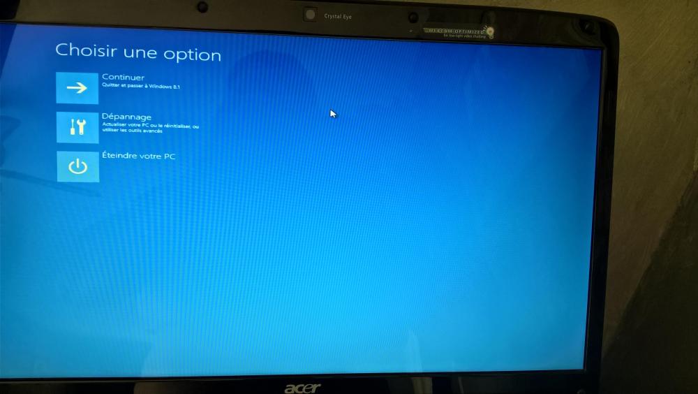 14. Bonjour Calisto06, Au départ quand j'ai parlé de la réinstallation de Windows je n'avais pas spécifié que je démarrais d'un écran où windows10 n'arrivait jamais à se lancer j'ai toujours la fenêtre bleu de Windows avec les points ronds tourbillonants et qui font patienter sans que cela n'aboutissent à rien, c'est pour cela que j'ai voulu réinstaller Windows10 en pensant que ceci allait résoudre le problème. mogine49