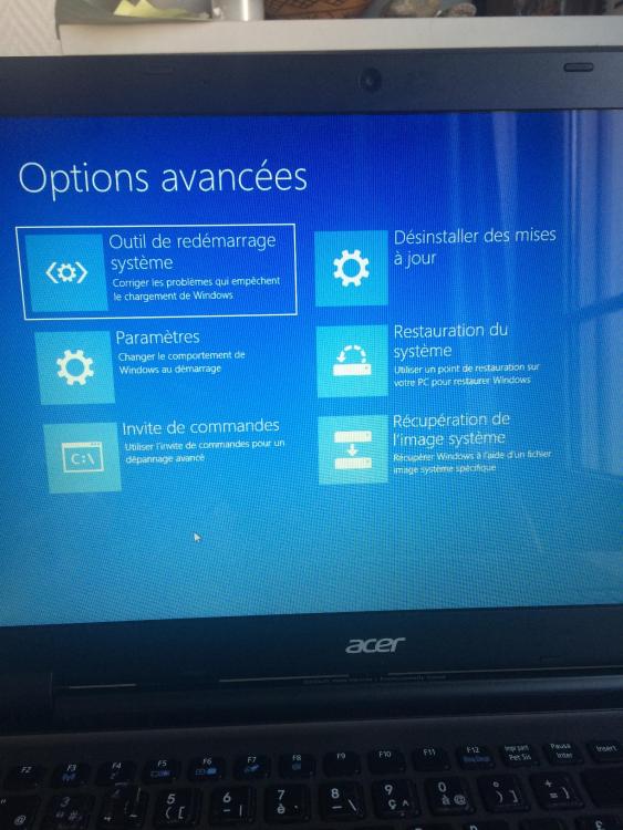 3. Merci pour les infos qui sont très claires. Je voudrais réinstaller Windows à partir d’une clé usb. J’ai la clé, sur la sortie « bleue » du PC Acer. Lorsque j’essaye de booter au démarrage ça ne fonctionne pas. F2 est la touche setup indiquée mais sans succès... ni F12 ou autre F. J’ai essayé d’accéder à UEFI à partir de Windows mais ça diffère à partir de l’étape 4 du tuto. Photos ci dessous. quelqu’un a une suggestion ? Merci bcp