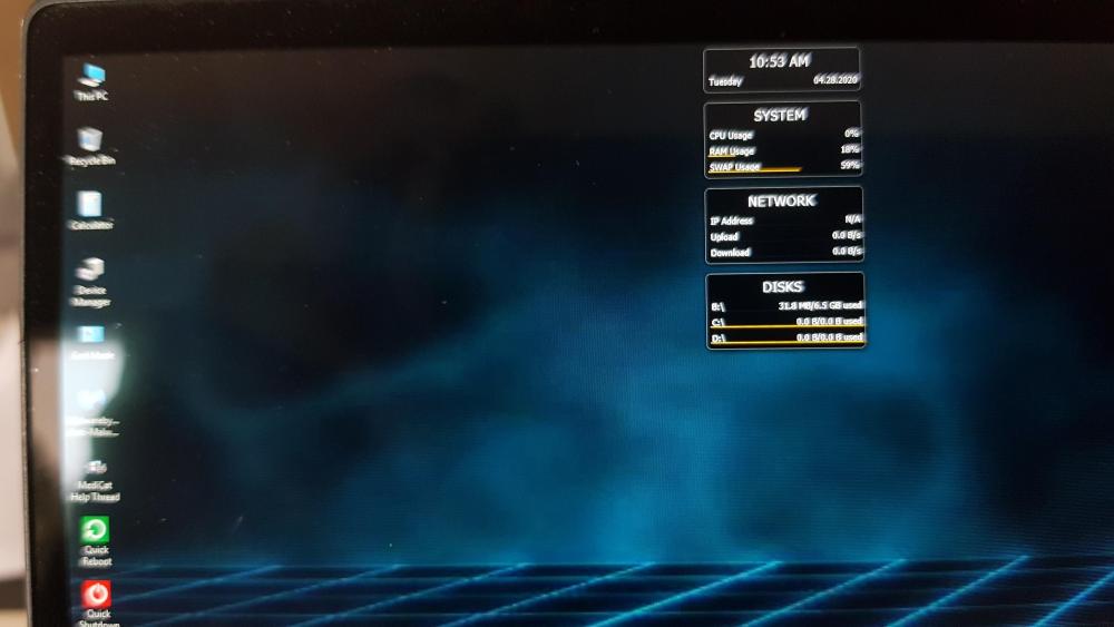 7. Bonjour Azamos et merci Je vois RAM (B:) et le boot (X:) Sur le desktop, le C: est mentionné comme ici https://www.google.com/search?q=medicat+v19.10+reinitialize&tbm=isch&ved=2ahUKEwiD7eWT3IrpAhVS4BoKHVgnBVIQ2-cCegQIABAA&oq=medicat+v19.10+reinitialize&gs_lcp=CgNpbWcQAzoECCMQJ1CYrgFYj74BYJbAAWgAcAB4AIABTIgB3wKSAQE1mAEAoAEBqgELZ3dzLXdpei1pbWc&sclient=img&ei=leunXsPOHNLAa9jOlJAF&bih=708&biw=1600#imgrc=9cc88Gam6XZH5M = souligné en orange, mais dans mon cas avec 0 Go