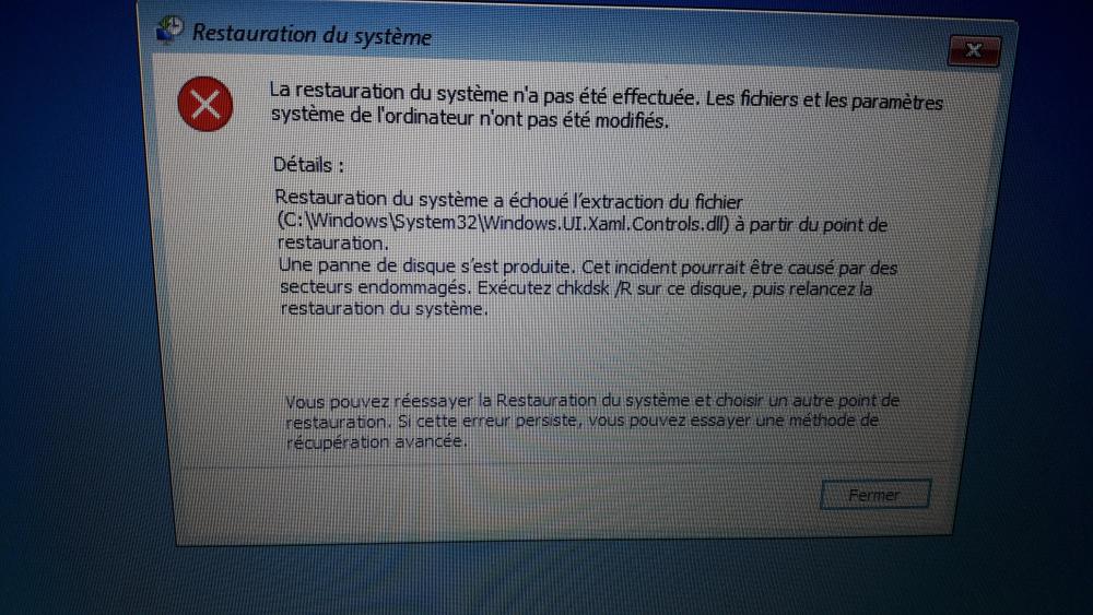 5. Oui en effet c est une faute de frappe il est en NFTS. Et voici ce qu' il m indiqué lors d une tentative de restauration après une sauvegarde. Donc j aimerais savoir si une réinstallation de windows suffira ou bien est ce que mon disque dur est endommagé?