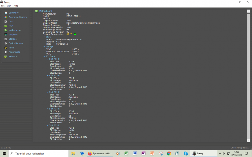 Bonjour Voici de que j'obtiens pour l'onglet Motherboard; cela donne des infos utiles ? Merci