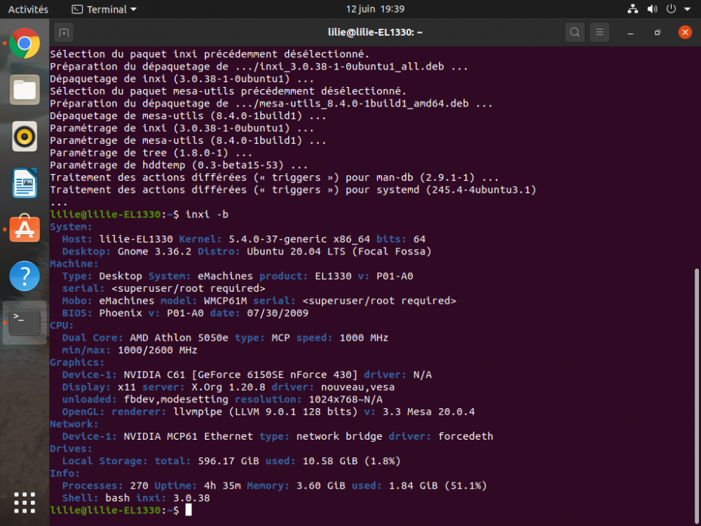 J'ai fais un test avec clé USB pour installer ubuntu 20.04 sur mon vieux emachines qui était sous windows 7.