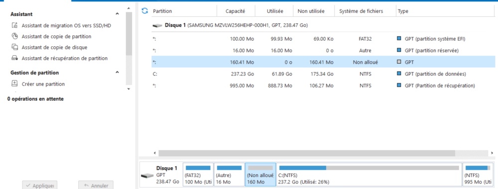 J'ai finalement pu fusionner la partition système (100 MB) avec l'espace libre non contigu à l'aide du logiciel EASEUS Partition Master PRO (la version gratuite ne permet pas cette fonctionnalité). Une fois complété j'ai pu installer la mise-à-jour 24H2 de Windows 11. Morale de l'histoire: allouer un espace d'environ 250 MB à la partition système pour éviter les ennuis !!!