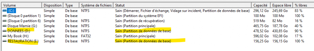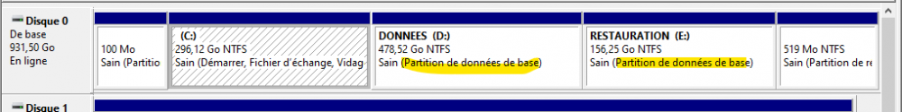 Re alors j'ai continué mes recherches, effectivement la dernière version de w10 nomme les partitions secondaires ainsi sur les disque GPT, sur les disques en MBR pas de changement Merci et bonne journée