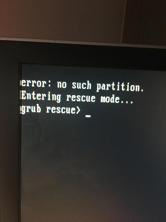 Bonjour, Si je démarre sur le disque dur, j'ai un message : error: no such partition Entering rescue mode.... grub rescue