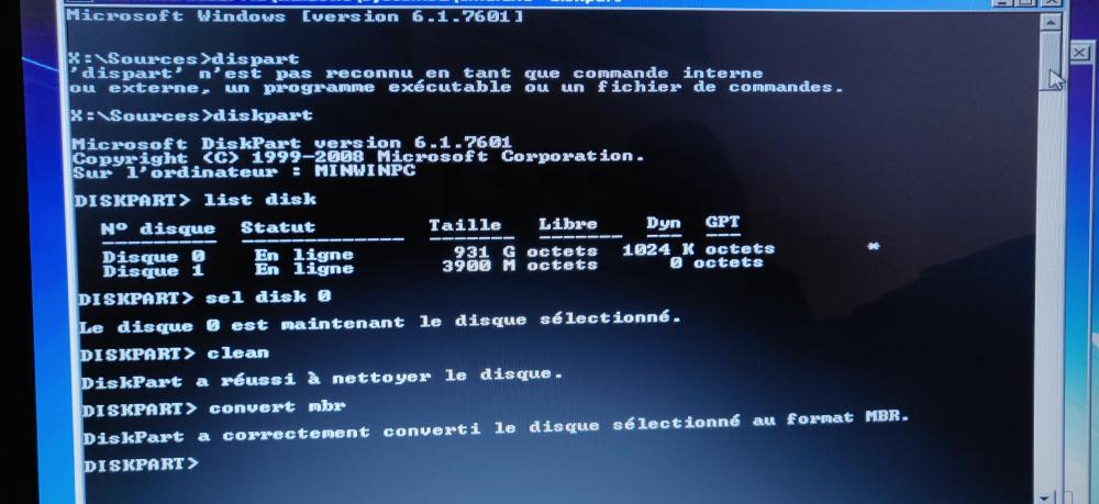 L'image Windows 7 apparait, le message "Windows télécharge les fichiers" etc ... , l'installation semble bien se passer.