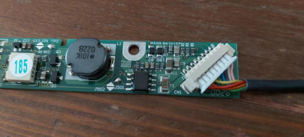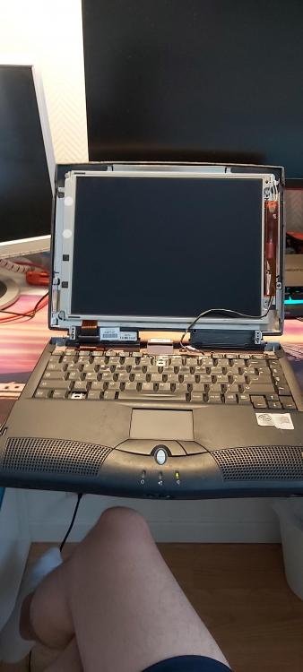 17. Voilà une photo de l'ordi démonté avec l'écran L'inverteur est dans le plastique orange