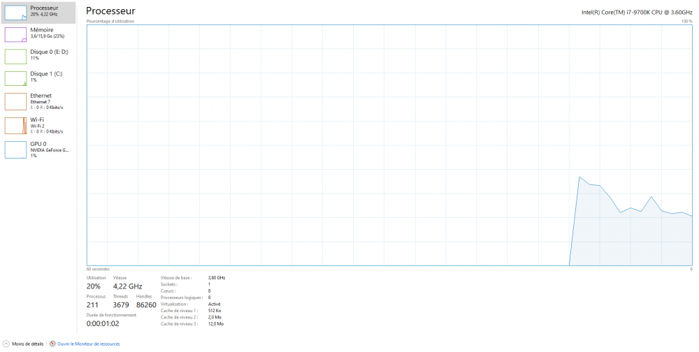 Souvent au bout de 2 minutes le site ou l'application charge et le client DNS ne prend plus de charge processeur.
