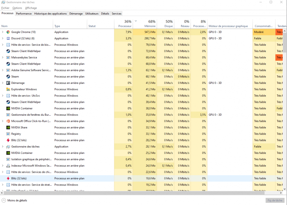 3. J'ai stopper discord et chrome j'ai du perdre 2-3%, et le navigateur ne change je rien Je précise j'ai 16go de ram :)