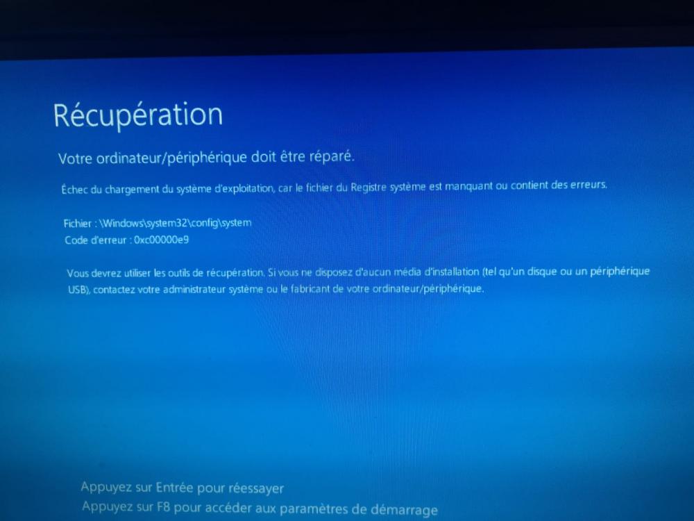 Bonjour, j'ai un ordi Dell XPS sous Windows 10. Un DD d'1T (D:) et un DD SSD de 256 G (C:). Cet après-midi, office a essayé de faire des mises à jour, mais je ne sais pas pourquoi. La MAJ abortée. Elle n'était pas possible avec un message d'erreur que je n'ai pas retenu. ça me l'avait déjà fait une fois il y a 15 jours mais j'avais redémarré et plus de problème. Cette fois-ci j'ai redémarré et impossible de lancer Windows! Le message que l'on me donne est: D:/windows/system 32/logfiles/Srt/SrtTrail.txt (donc c'est sur le DD d'1T où il y a toutes mes données perso mais également des programmes. je ne sais pas où se trouve Office; j'imagine que le DD SSD est préservé) J'ai fais toutes les manip possible: - outils de redémarrage: sans effet - restaurer la dernière session: impossible car pas de point de restauration retrouvé - vérification du system par sfc. Votre commande ne marche pas néanmoins, j'ai juste fait sfc scannow sur les 2 disques et chkdsk sur les 2 disques également. Le disque SSD est en cours. Sur le D, il n'y avait rien de particulier - J'ai lu le contenu SrtTrail: "erreur non retrouvée" - J'ai essayé de désinstaller les MAJ Windows: il n'y arrive pas! - j'ai essayé de désactiver la réparation automatique. Votre commande"bcdebit" est non reconnue - enfin j'ai essayé de réinitialiser Windows mais il me dit qu'il ne peut pas le faire via le cloud ou via le local... Ce que je n'arrive pas à faire est de restaurer le registre (je n'arrive pas à inscrire la commande et ce que je fais ne fonctionne pas) et pour l'instant, je ne veux pas réinstaller windows sans avoir récupérer mes données! 1/ Auriez-vous une idée de ce qu'il se passe? Puis-je désinstaller office via la commande DOS si c'est cela le problème? 2/ Je n'arrive pas non plus à le démarrer en mode sans échec. Comment faire avec windows 10 (J'ai éteint et rallumé 3 fois, sans résultats) Merci d'avance de vos idées qui j'espère seront nombreuses!