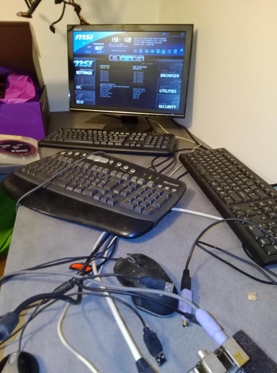 11. Bonjour tout le monde :) Depuis hier soir je me prends la tête sur une config. CM : MSI 990fxa-GD65 (MS 7640 v 3.1) Proc : AMD FX 8320 RAM : 16 go Corsair Vengeance le reste on s'en fiche un peu :) Donc pour l'histoire, oui de vieilles pièces que j'ai en rab ; je voudrais monter cette tour histoire de l'avoir "au cas où" , ou pour la revendre à pas cher. Je monte le tout sur ma "table de bench" , tout s'allume nickel, j'ai mon bip et là ... ben je peux plus rien faire ^^ Aucun clavier ni souris ne marche, donc "zobby" pour aller dans le bios, bidouiller mes boots pour installer quoique ce soit. Je change de ports USB (test tous) : rien n'y fait. je rajoute un "bidule" en + , que l'on branche sur la CM pour ajouter des ports USB à l'arrière : toujours rien. Là je me dis "problème BIOS" ? Clear bios, j'enlève la pile 5 minutes (je change même la pile des fois que...) : encore rien. Là pour dernier test, je branche un lecteur avec mon vieux cd d'install W7 ultimate 64: aucune réponse des claviers/souris au démarrage (toujours un bip), ça boot bien sur le cd, j'arrive à l'écran qui va bien ... mais je peux rien faire car pas de mulot ! Par contre ma souris de "test" est bien allumée (donc y a du "jus" dans tous les ports [test "la souris s'allume"]) Est-ce possible que tous les ports usb soient "physiquement" morts dans leur partie du Southbridge ? Parce que lui doit aller bien vu que le reste marche (ports Sata, PCI...) J'en ai monté quelques-uns, des PC ... mais là j'avoue humblement que je commence à sécher ^^ Une lumière pour éclairer ma lanterne dans la nuit ? ^^
