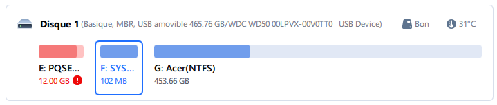 Bonjour, Le clonage avec HDDRawCopy1.10Portable.exe a reussi. Avec EaseUS Partition Master j'ai pu reconstruire le MBR du disque, corriger les erreurs de clusters de la partition G: mais pas de la partition F: Et les partitions F: et G: sont toujours illisibles dans l’explorateur : Y a t-il une solution !? j'ai pu récupéré avec EaseUS Data Recovery Wizard pas mal de fichiers + ou - lisibles de G: !! -